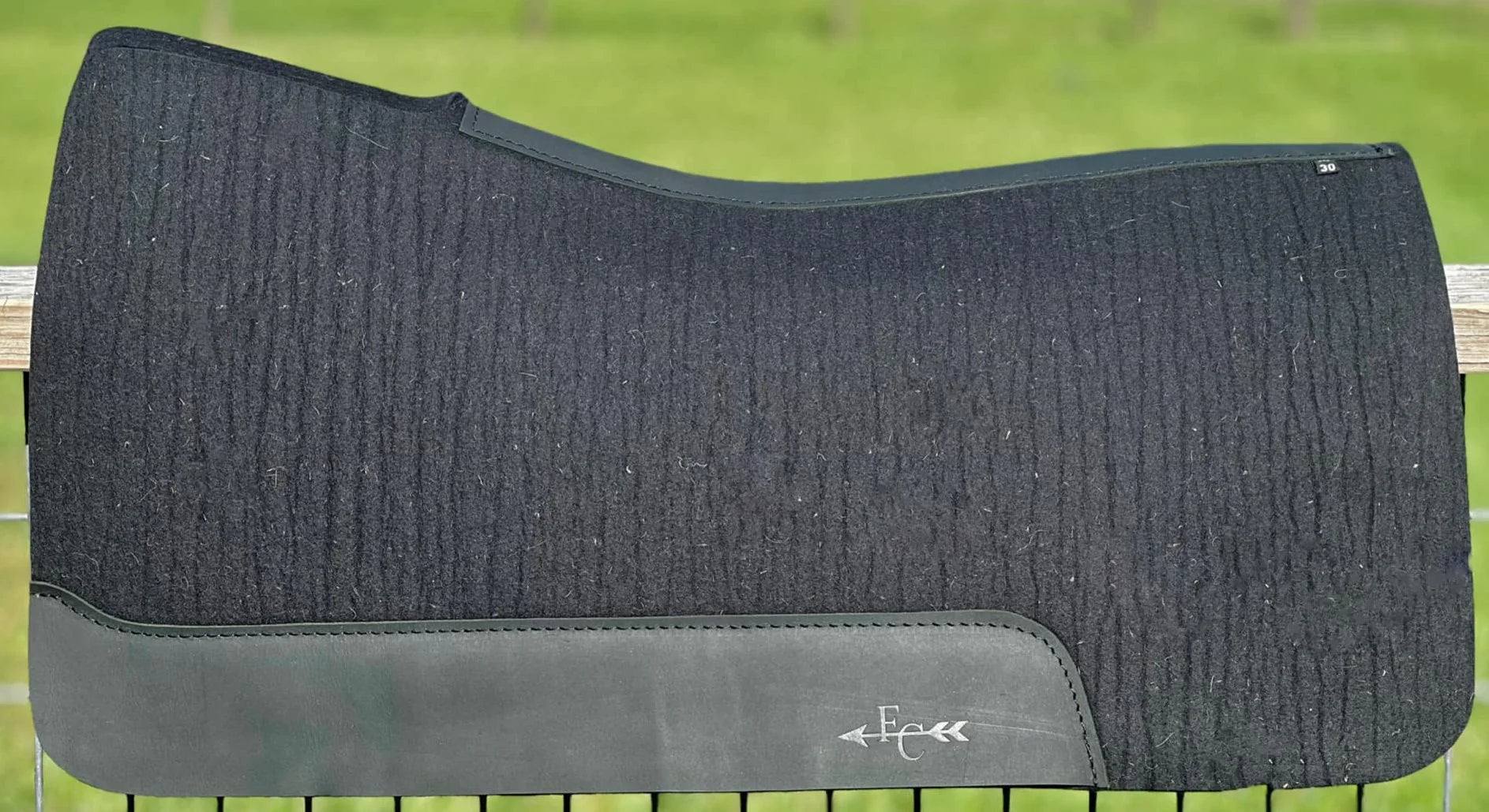 100% Wool Saddle pads naturally cool the horse's back while providing optimal pressure relief beneath the saddle. The natural material allows for breathability beneath the saddle. They naturally begin to conform to the horses back after just one ride but will easily return to its normal shape for the next horse. The wool provides natural moisture wicking capabilities preventing excessive moisture trapping like synthetic materials do. The wool can absorb up to 30% its dry weight before the material becomes damp to touch. The natural fibers also provide optimal compression absorption during intense activity. These characteristics provide optimal relief for the horse and longevity in the pad for years to come.