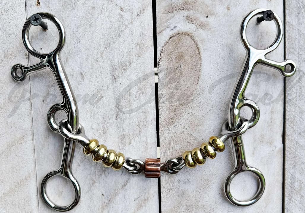 GERMAN SILVER BEADS: provide a pacifier for nervous horses and increases salivation which naturally relaxes the jaw promoting more effective response to the bit. The beads also roll on the bars of the mouth preventing over reaction to bar pressure.