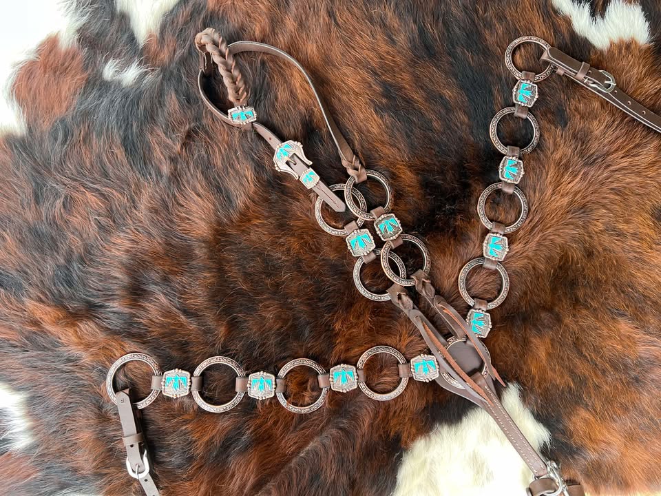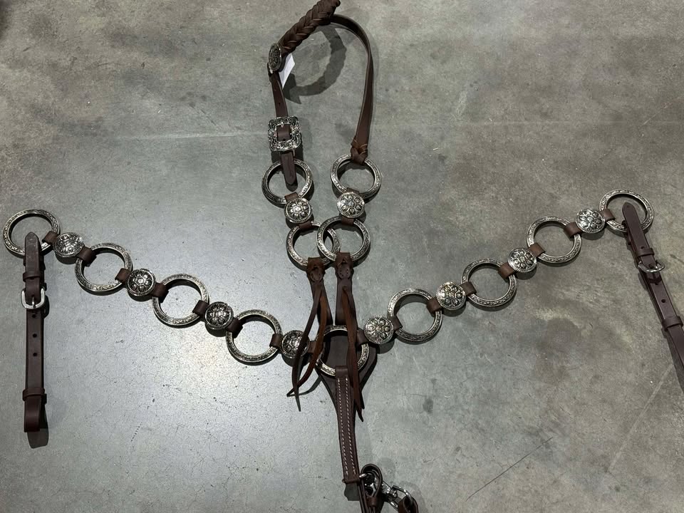 Tack sets feature bronze rings and flashy conchos