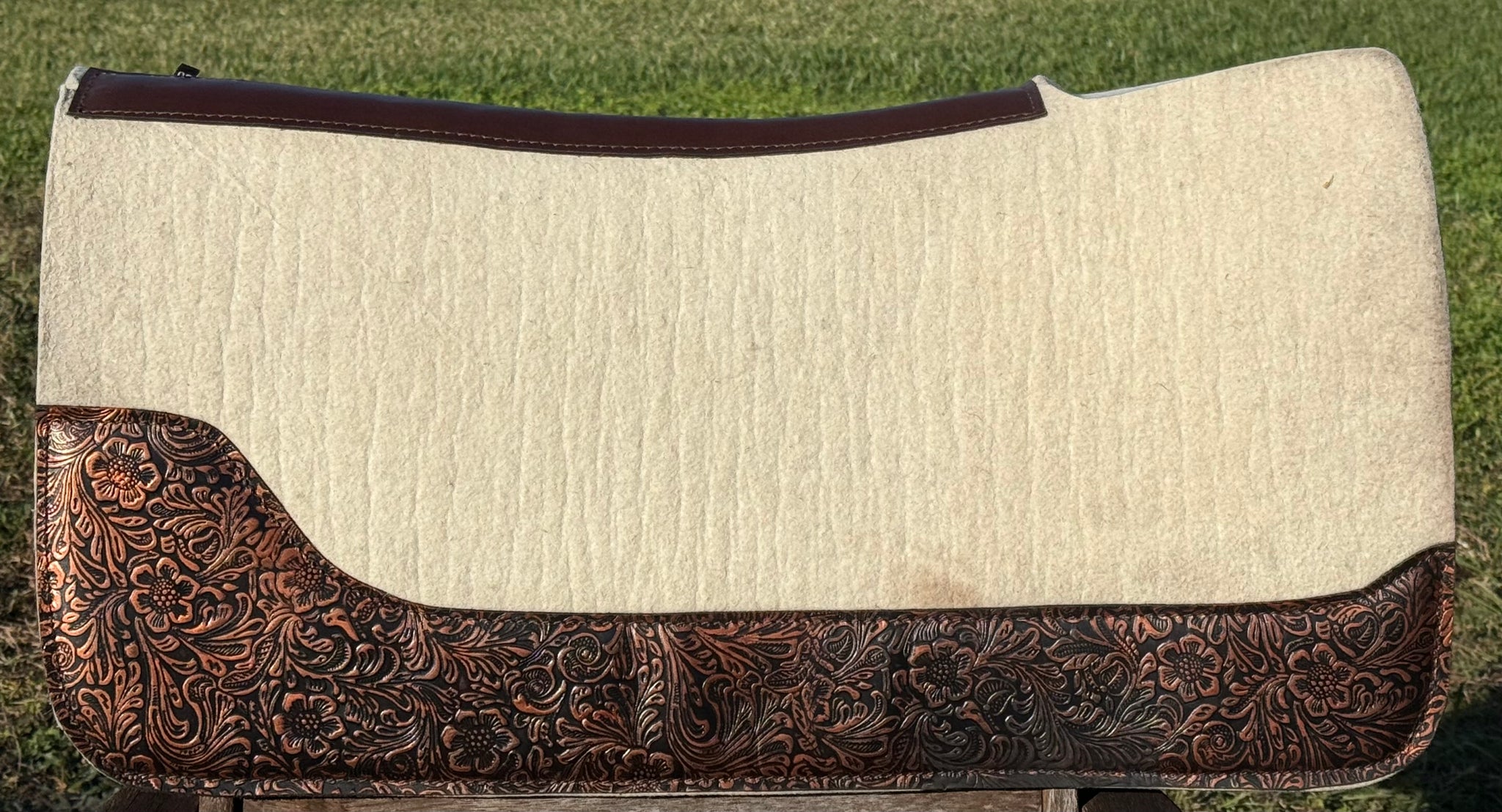 100% Wool Saddle pads naturally cool the horse's back while providing optimal pressure relief beneath the saddle. The natural material allows for breathability beneath the saddle. They naturally begin to conform to the horses back after just one ride but will easily return to its normal shape for the next horse. The wool provides natural moisture wicking capabilities preventing excessive moisture trapping like synthetic materials do. The wool can absorb up to 30% its dry weight before the material becomes damp to touch. The natural fibers also provide optimal compression absorption during intense activity. These characteristics provide optimal relief for the horse and longevity in the pad for years to come.